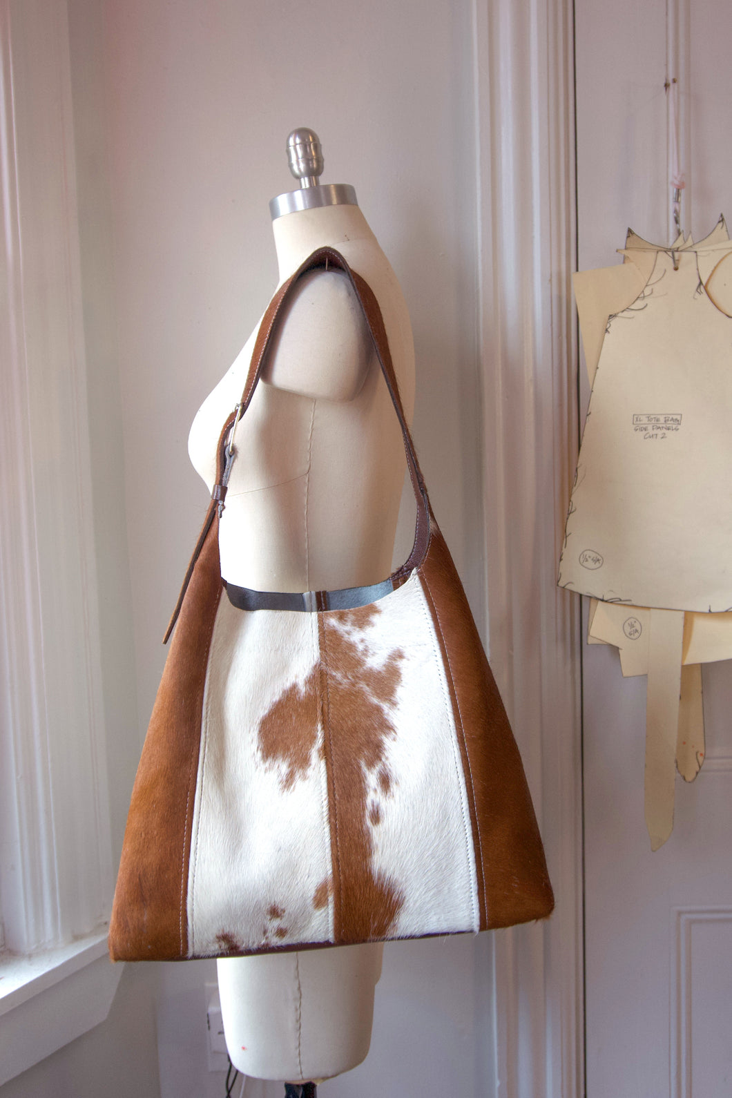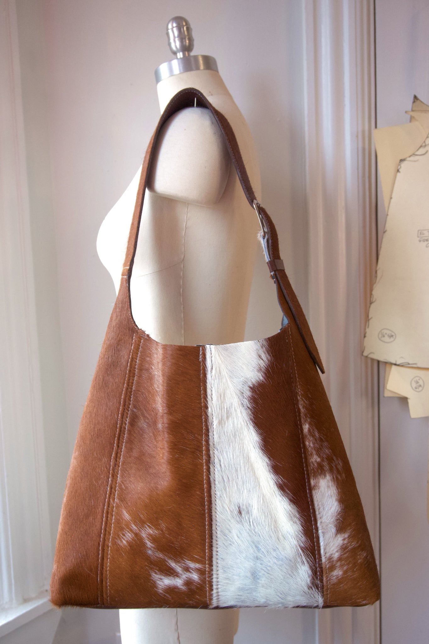 This large cowhide tote bag is perfect for working in the city, one of a kind, and handmade and designed by Madeline Hixon in her Portland, Maine studio. These unique bags are unlined to show off the authenticity of the cowhide, but still feature one large pocket on the inside for organization. All leather hides are sourced from food by-product and deadstock, meaning they would otherwise have gone to waste. Sourcing this way ensures that all Mangia! products stay as ethically made as possible. The buckle hardware was also upcycled from belts that were thrifted around New England by Madeline & her Mom(shoutout to the best)! By purchasing this bag you will gain bragging rights not only for having the only one to ever exist, but also for supporting a small artist who can now pay for rent and groceries this holiday :)