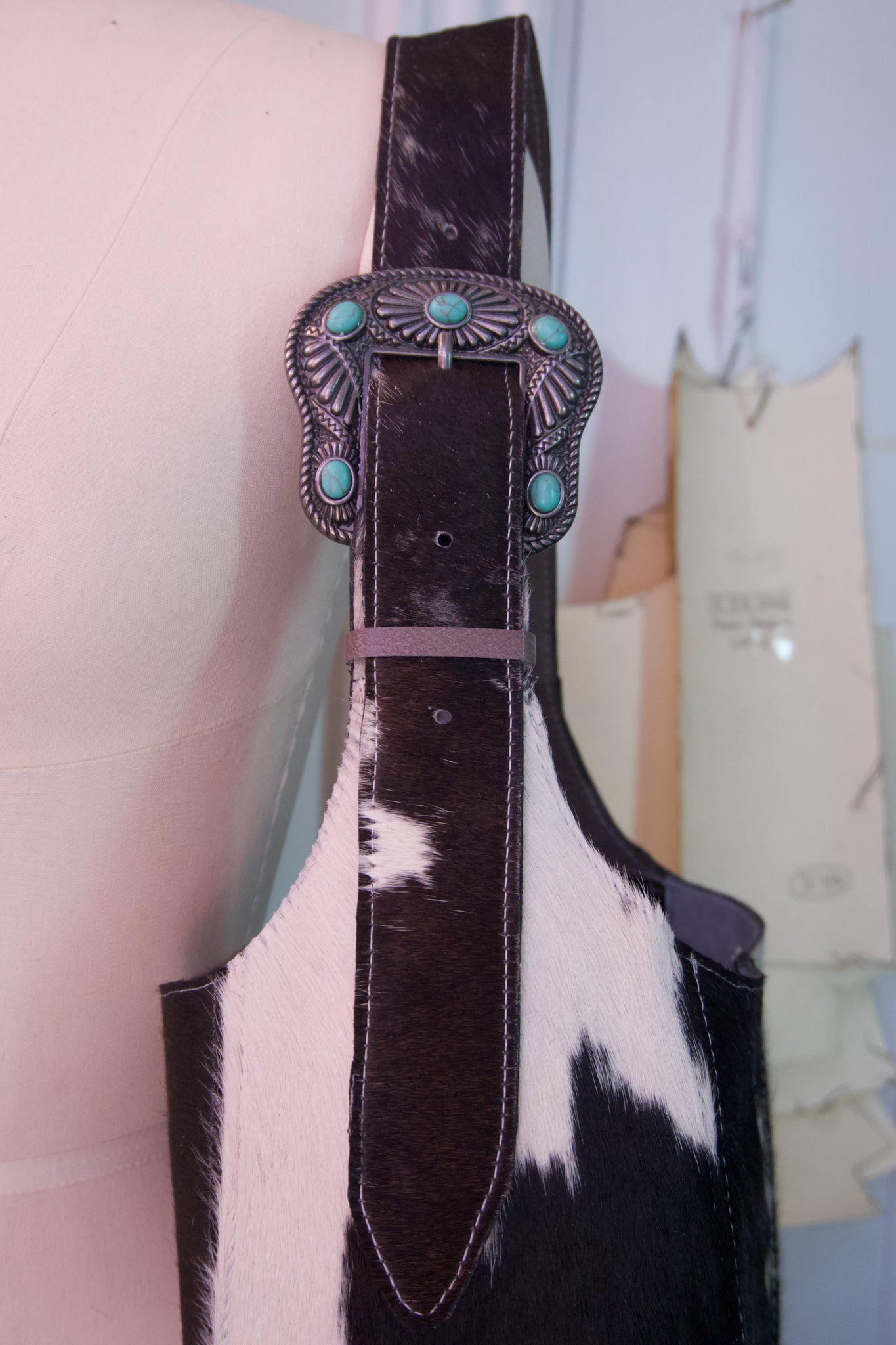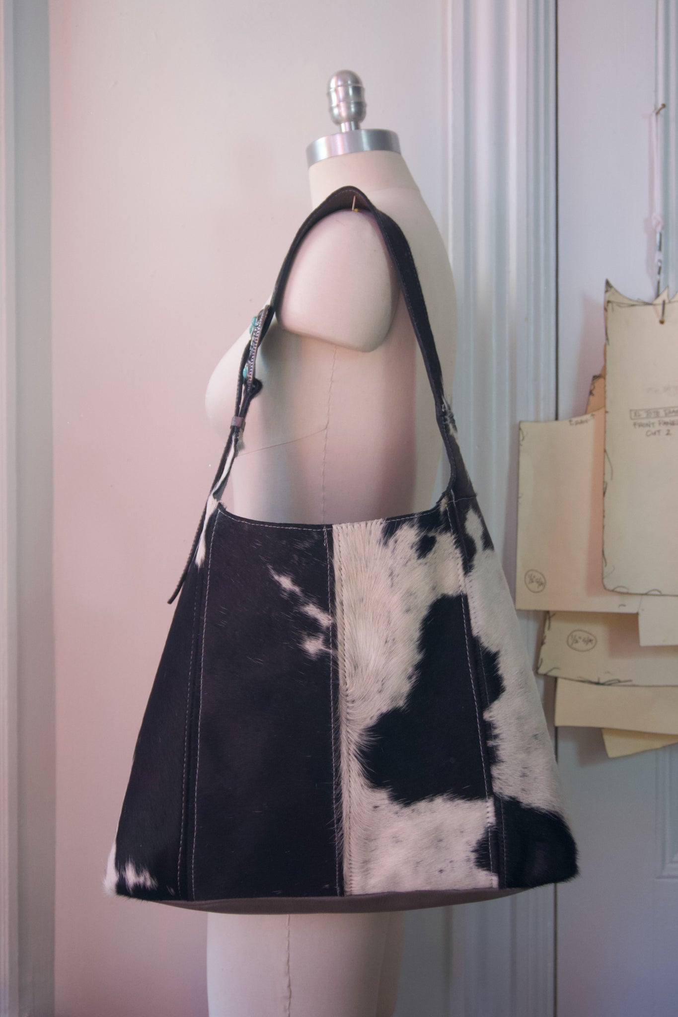 This large cowhide tote bag is perfect for working in the city, one of a kind, and handmade and designed by Madeline Hixon in her Portland, Maine studio. These unique bags are unlined to show off the authenticity of the cowhide, but still feature one large pocket on the inside for organization. All leather hides are sourced from food by-product and deadstock, meaning they would otherwise have gone to waste. Sourcing this way ensures that all Mangia! products stay as ethically made as possible. The buckle hardware was also upcycled from belts that were thrifted around New England by Madeline & her Mom(shoutout to the best)! By purchasing this bag you will gain bragging rights not only for having the only one to ever exist, but also for supporting a small artist who can now pay for rent and groceries this holiday :)