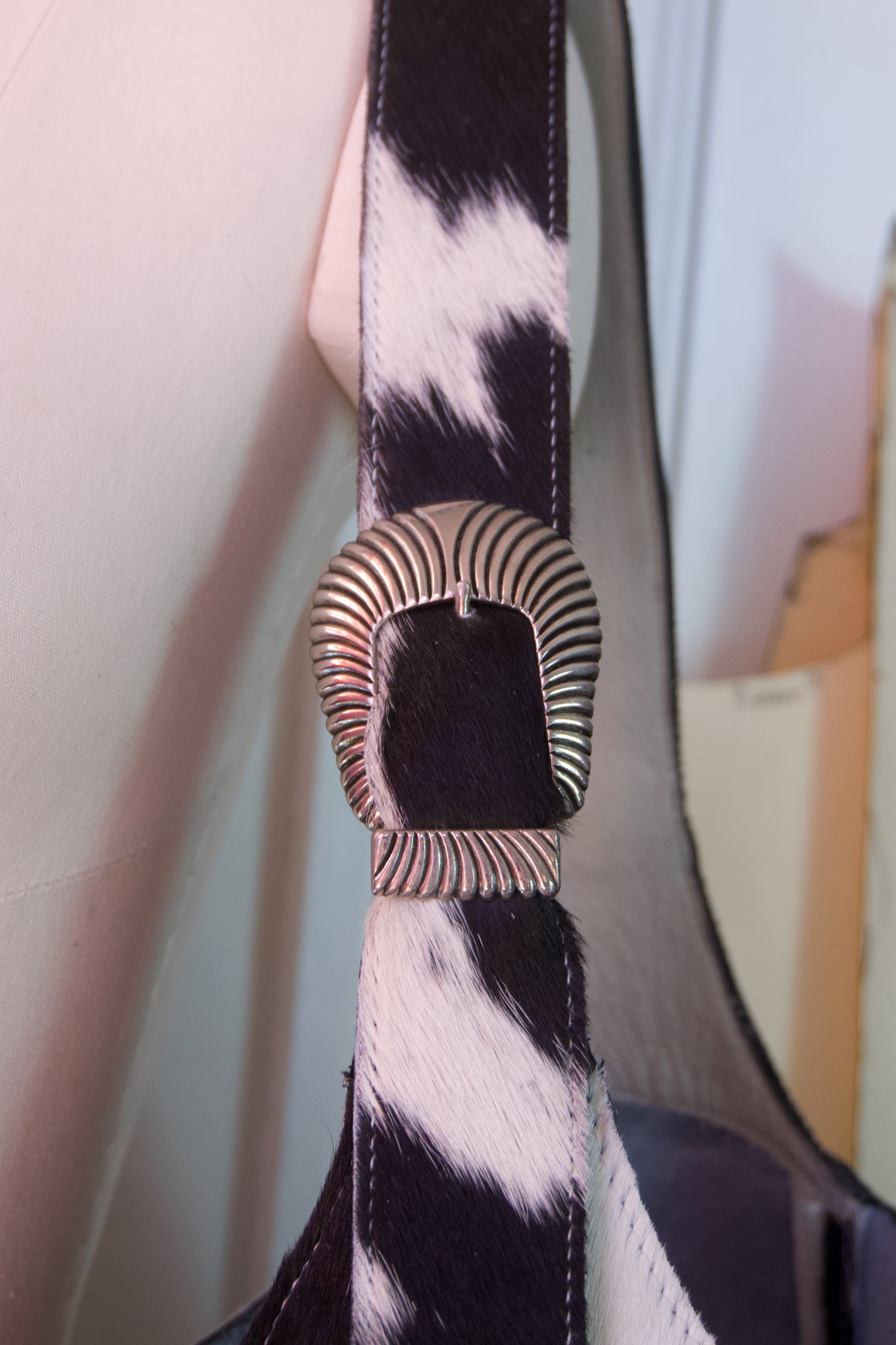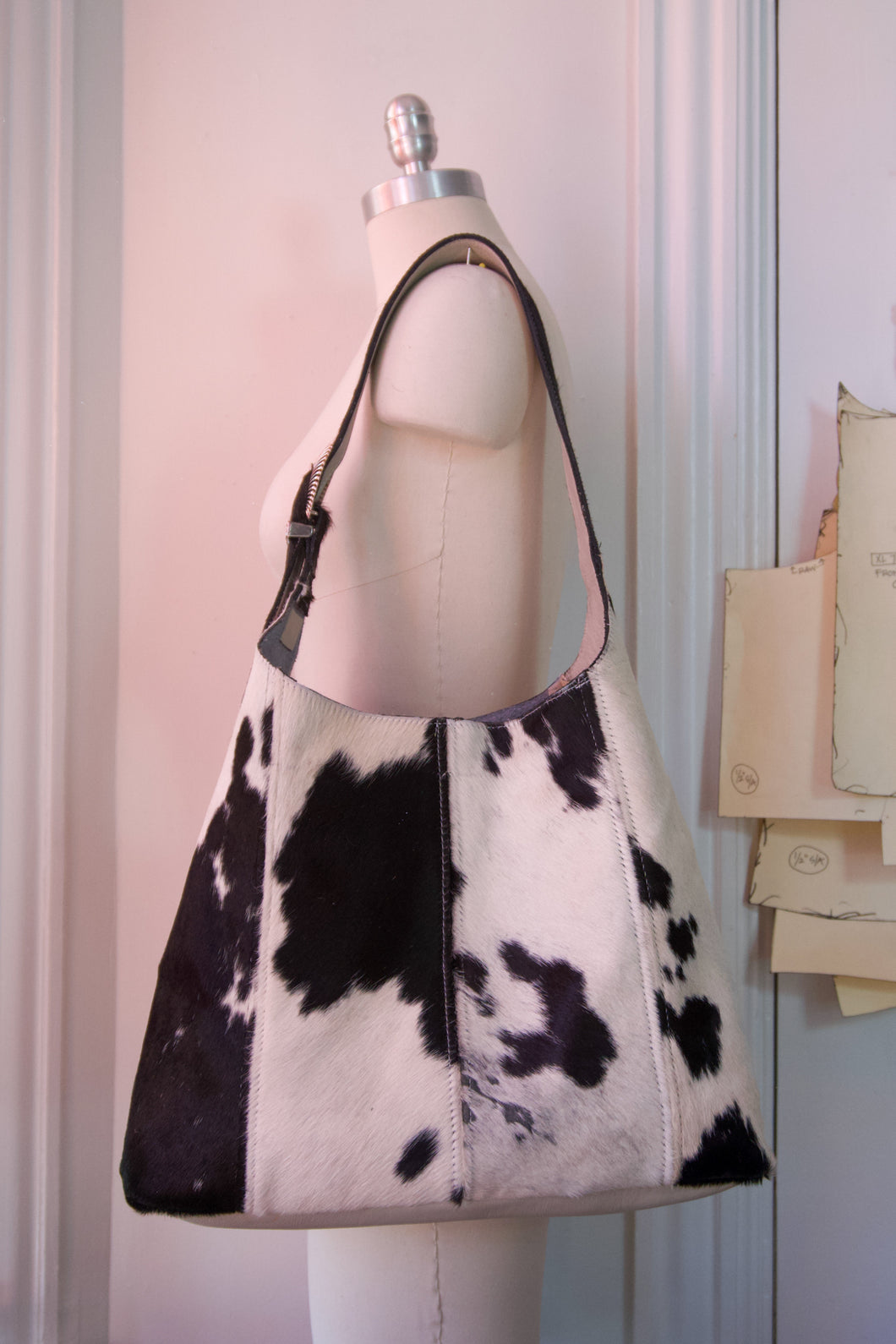 This large cowhide tote bag is perfect for working in the city, one of a kind, and handmade and designed by Madeline Hixon in her Portland, Maine studio. These unique bags are unlined to show off the authenticity of the cowhide, but still feature one large pocket on the inside for organization. All leather hides are sourced from food by-product and deadstock, meaning they would otherwise have gone to waste. Sourcing this way ensures that all Mangia! products stay as ethically made as possible. The buckle hardware was also upcycled from belts that were thrifted around New England by Madeline & her Mom(shoutout to the best)! By purchasing this bag you will gain bragging rights not only for having the only one to ever exist, but also for supporting a small artist who can now pay for rent and groceries this holiday :)