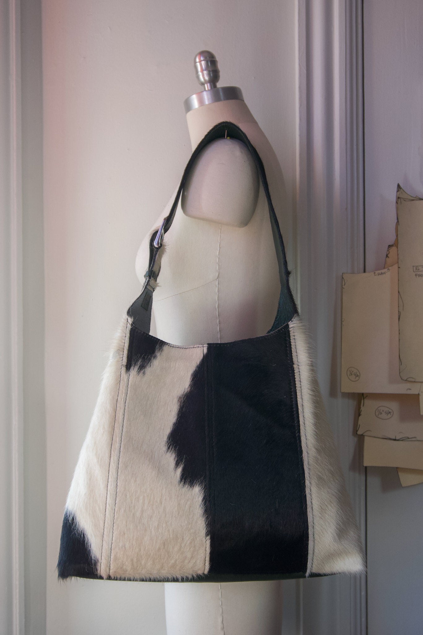 This large cowhide tote bag is perfect for working in the city, one of a kind, and handmade and designed by Madeline Hixon in her Portland, Maine studio. These unique bags are unlined to show off the authenticity of the cowhide, but still feature one large pocket on the inside for organization. All leather hides are sourced from food by-product and deadstock, meaning they would otherwise have gone to waste. Sourcing this way ensures that all Mangia! products stay as ethically made as possible. The buckle hardware was also upcycled from belts that were thrifted around New England by Madeline & her Mom(shoutout to the best)! By purchasing this bag you will gain bragging rights not only for having the only one to ever exist, but also for supporting a small artist who can now pay for rent and groceries this holiday :)